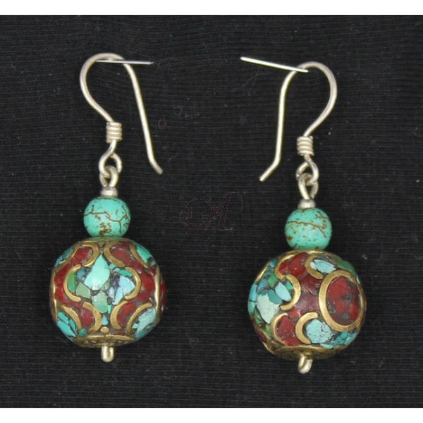 Boucles d’oreilles ornés de turquoise et jaspe rouge + boite à bijoux