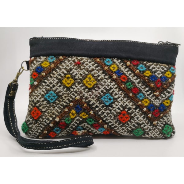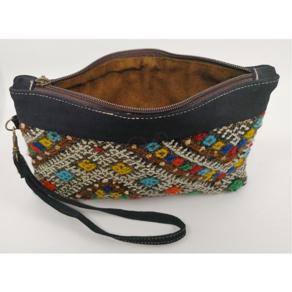Pochette en laine tissée et velours fait main par des artisans marocains
