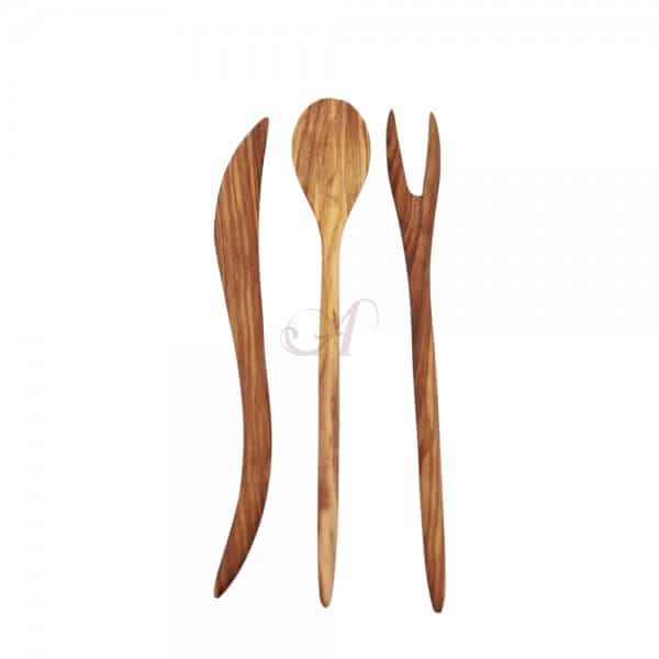 Set 3 ustensiles artisanaux en bois d’Olivier